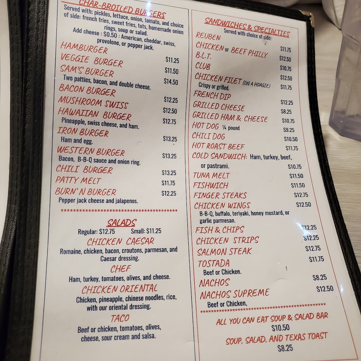 Every plate reflects quality and care, ensuring a memorable dining experience. Customers praise the friendly service and homey atmosphere, making every visit feel special. Whether you’re stopping on a road trip or seeking a cozy meal, Sam's is a must-visit destination!