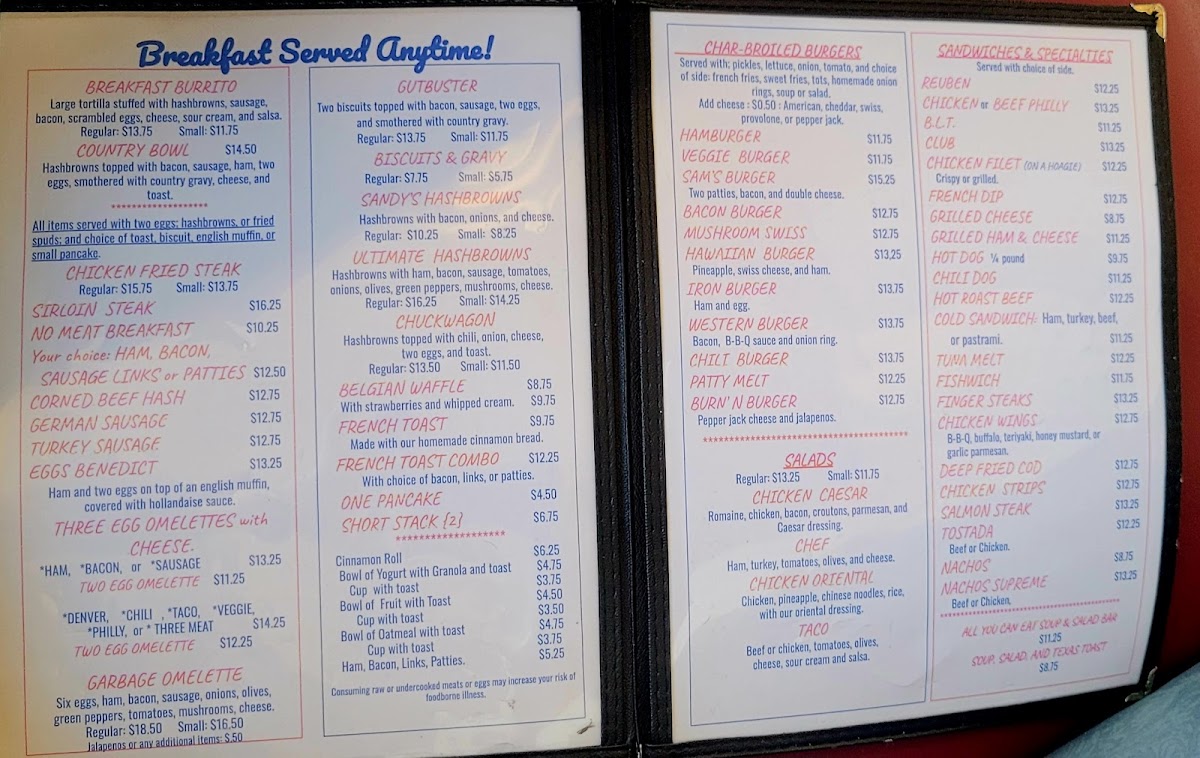 Welcome to Sam's Restaurant, a culinary gem situated at 711 W Cameron Ave, Kellogg, ID. Nestled in the heart of Idaho, this inviting eatery is perfect for travelers and locals alike. The menu boasts an array of comforting dishes, from homemade chili and soft, pillowy quesadillas to hearty portions of chicken fried steak and cinnamon French toast.